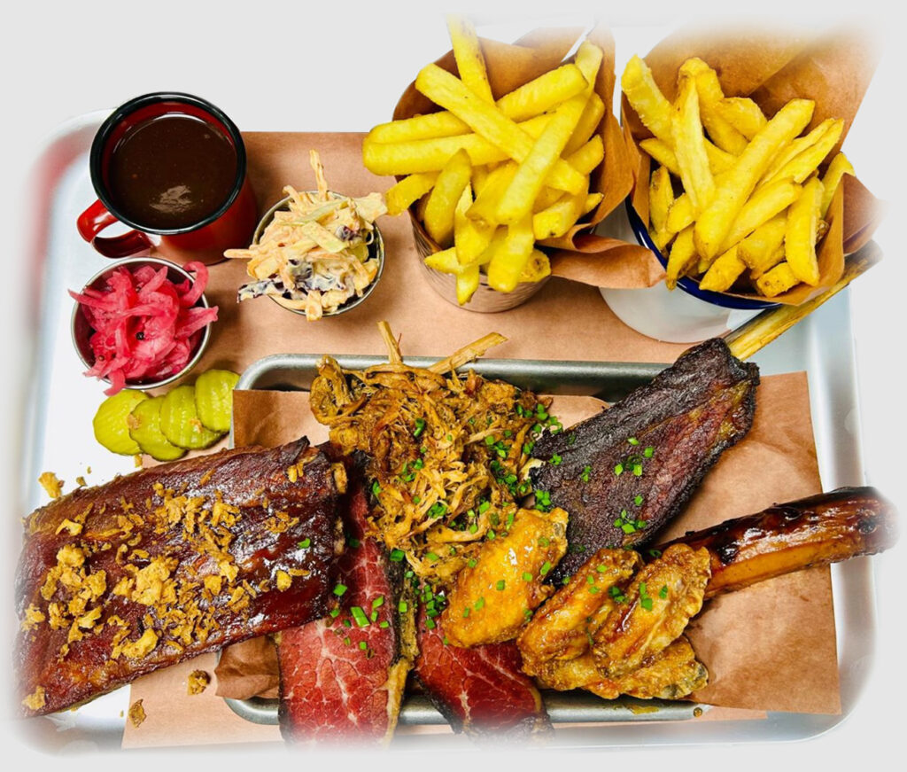 Try ALL our firehouse finest cuts on one tray, perfectly smoked, served with fries, slaw, pickles, 2 dips of your choice and our signature BBQ Gravy.